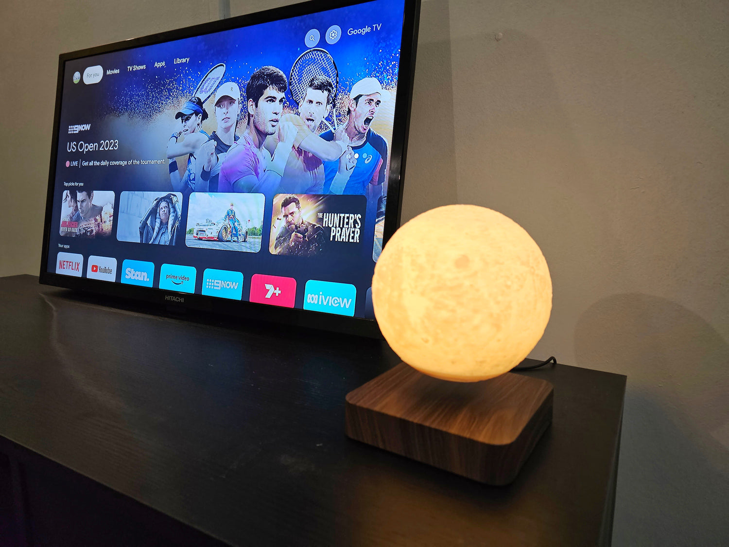 Choose between light and dark wood grain bases to match Levita Luna seamlessly with your decor.