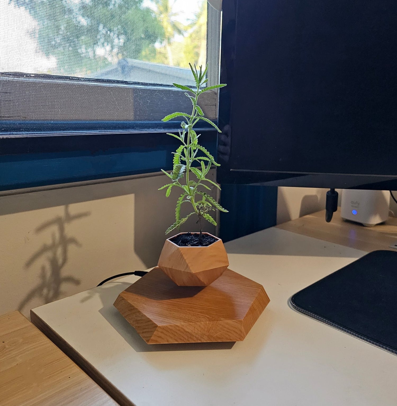 Experience the enchantment of nature defying gravity with Terra Serenity. This innovative creation combines the beauty of nature with the elegance of magnetic levitation, showcasing your a particular herb or other small plant in mid-air, gently rotating, creating a mesmerizing display.